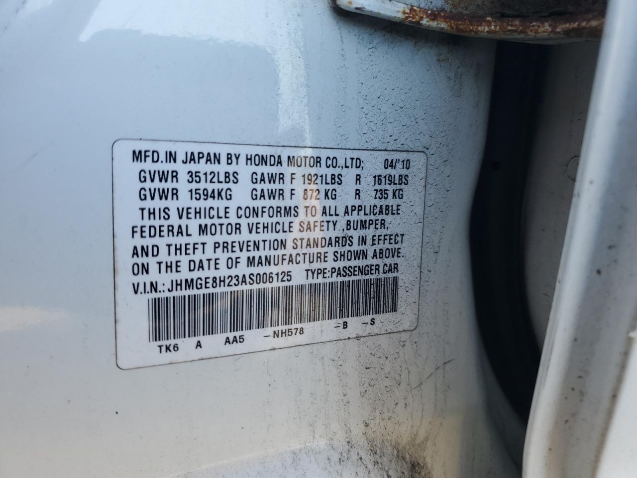 2010 HONDA FIT - JHMGE8H23AS006125, колір - Білий, 1.5, Бензин, із США