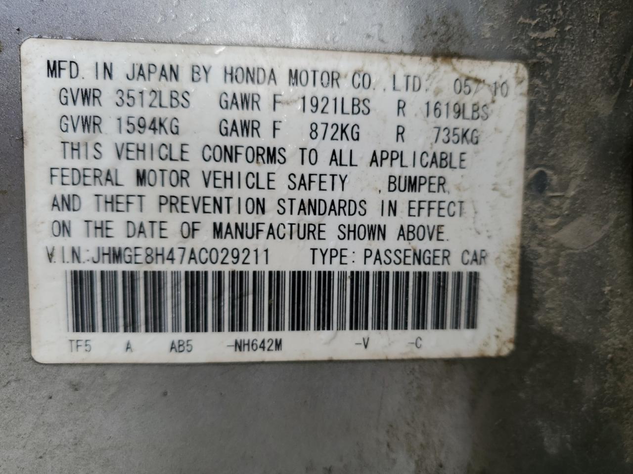 2010 HONDA FIT - JHMGE8H47AC029211, колір - Срібний, 1.5, Бензин, із США