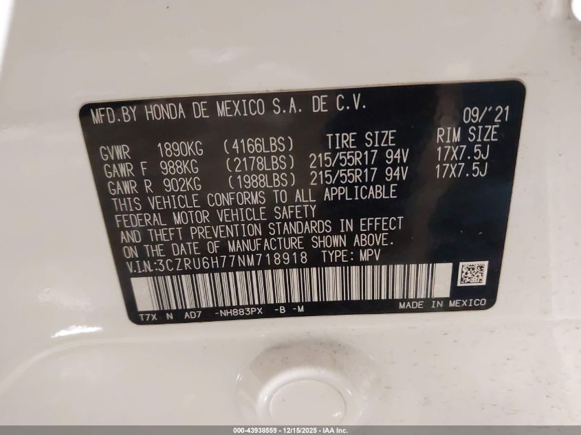 Колір БілийЦиліндри 4Привід Повний привідVIN 3CZRU6H77NM718918Стан Заводиться та їде (перевірено)Ушкодження Передня або задняДата аукціона 2025-12-17