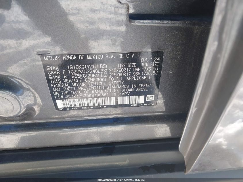2024 HONDA HR-V - 3CZRZ2H39RM780561, колір - Сірий, 2.0, Бензин, Повний привід із США