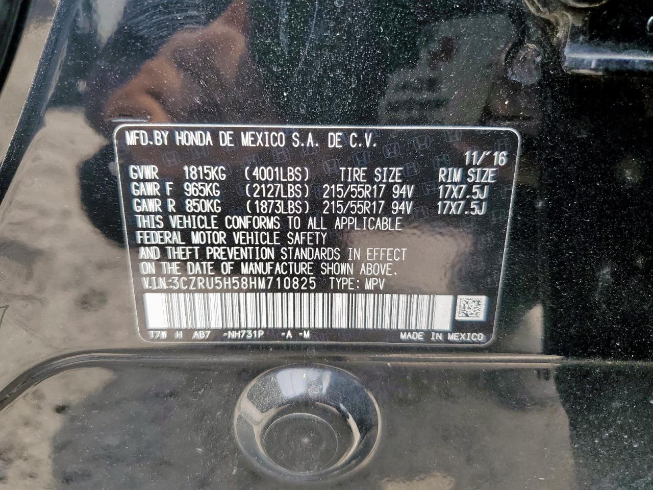 2017 HONDA HR-V - 3CZRU5H58HM710825, колір - Сірий, 1.8, Бензин, із США