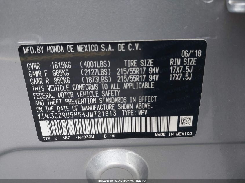 2018 HONDA HR-V - 3CZRU5H54JM721813, колір - Срібний, 1.8, Бензин, Передній привід із США