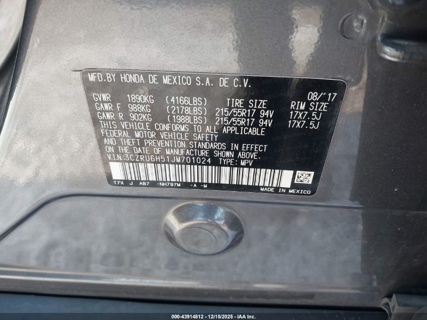 2018 HONDA HR-V - 3CZRU6H51JM701024, колір - Сірий, 1.8, Бензин, Повний привід із США