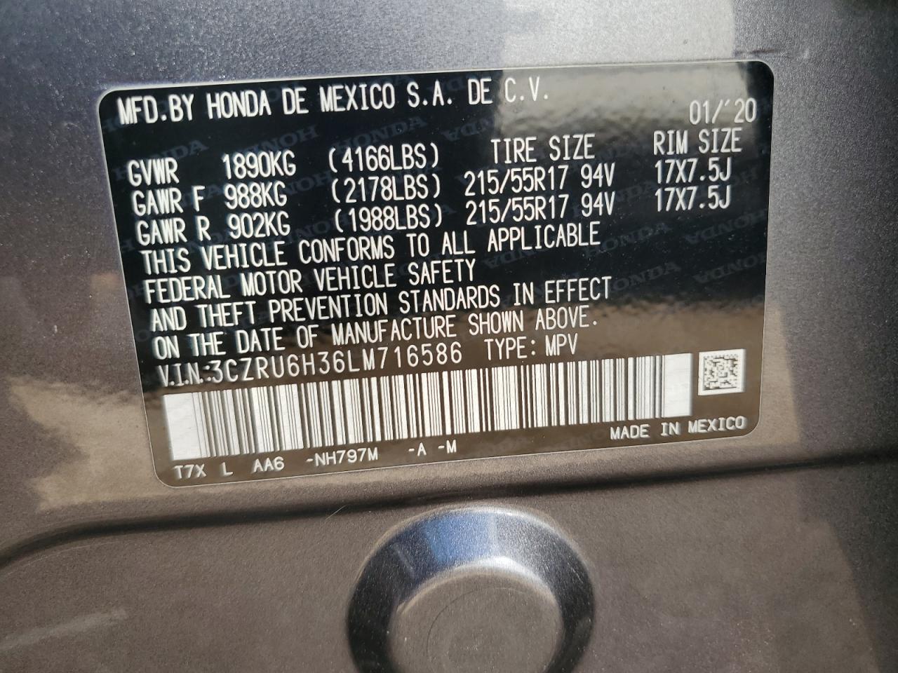 2020 HONDA HR-V - 3CZRU6H36LM716586, колір - Сірий, 1.8, Бензин, Повний привід із США