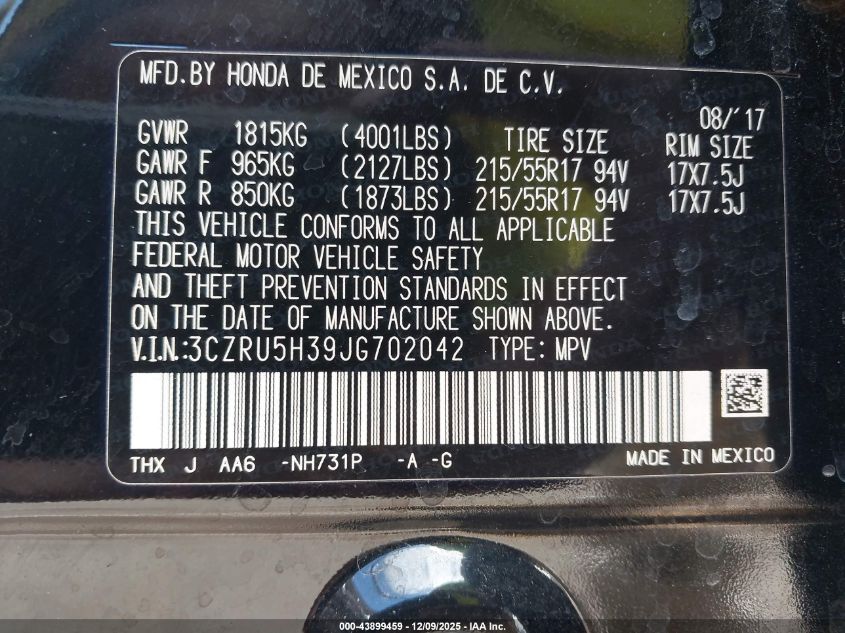 2018 HONDA HR-V - 3CZRU5H39JG702042, колір - Чорний, 1.8, Бензин, Передній привід із США
