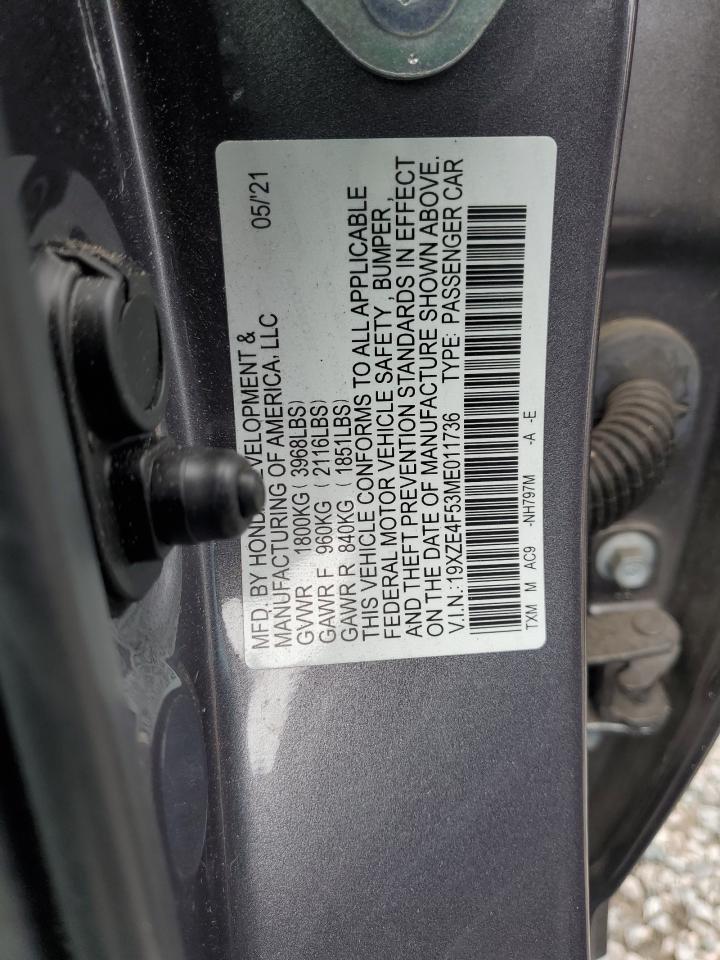 2021 HONDA INSIGHT - 19XZE4F53ME011736, колір - Сірий, 1.5, Гібрид, із США