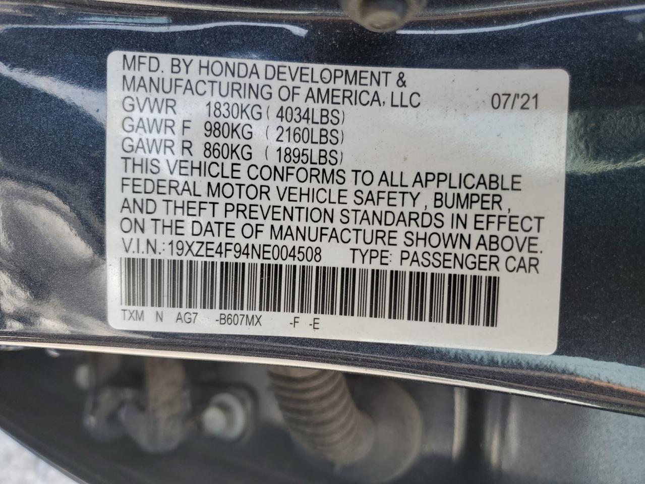 2022 HONDA INSIGHT - 19XZE4F94NE004508, колір - Деревне вугілля, 1.5, Гібрид, із США