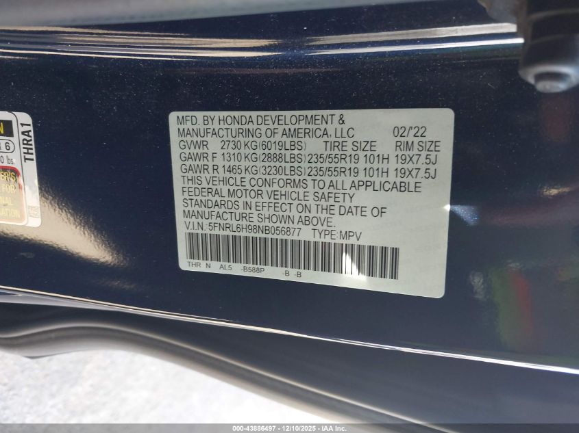 2022 HONDA ODYSSEY TOURING
