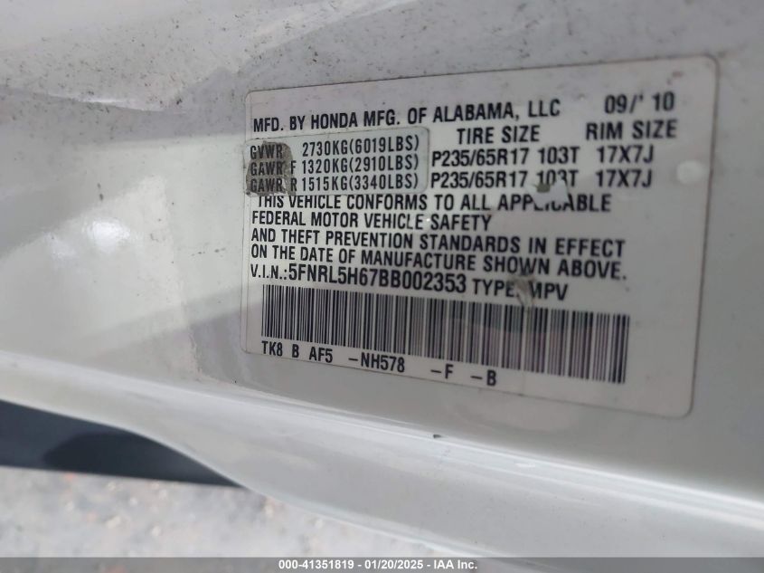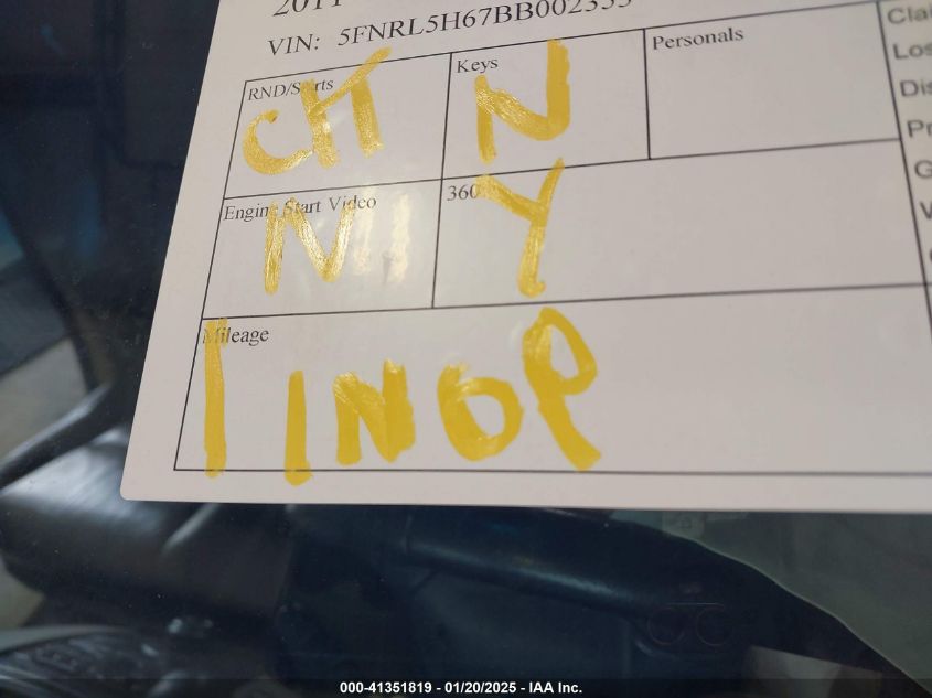 Колір БілийЦиліндри 6Привід Передній привідVIN 5FNRL5H67BB002353Стан СтаціонарноУшкодження Передня або задня