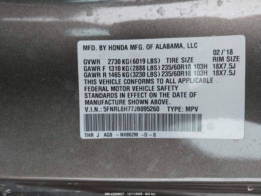 2018 HONDA ODYSSEY - 5FNRL6H77JB095260, колір - Коричневий, 3.5, Бензин, Передній привід із США