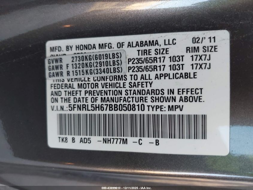 Колір КоричневийЦиліндри 6Привід Передній привідVIN 5FNRL5H67BB050810Стан Заводиться та їде (перевірено)Ушкодження Задня ліва