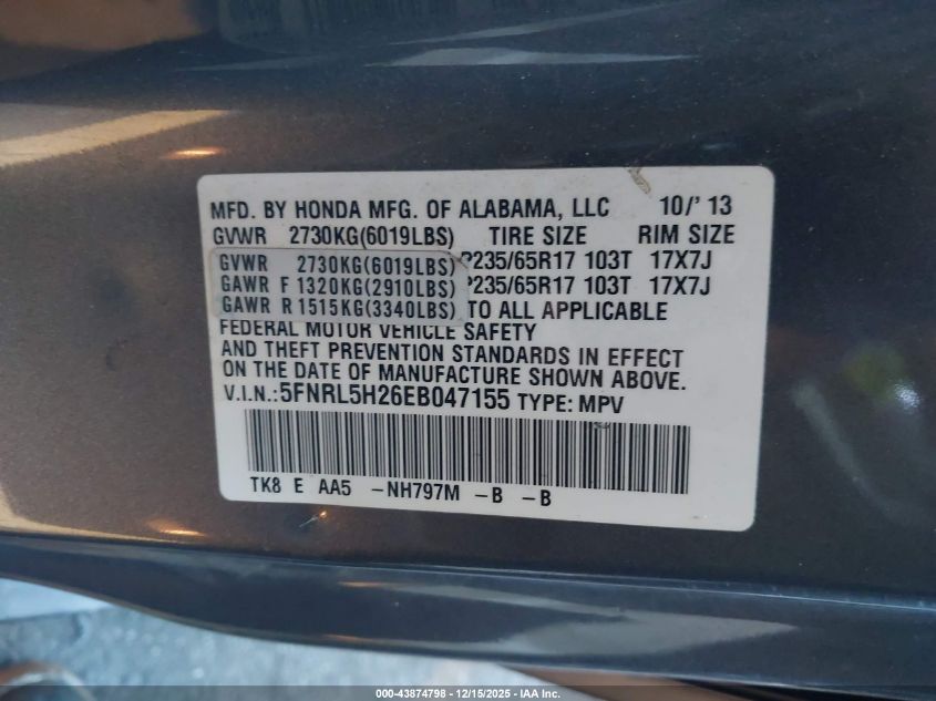 Колір СірийЦиліндри 6Привід Передній привідVIN 5FNRL5H26EB047155Стан Заводиться та їде (перевірено)Ушкодження Задня
