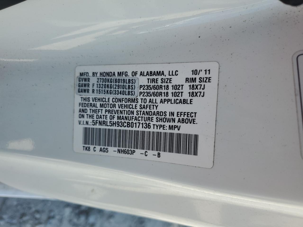 Колір БілийЦиліндри 6VIN 5FNRL5H93CB017136Стан ЗаводитьсяУшкодження Передня або задняДата аукціона 2025-10-08