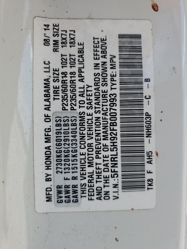 2015 HONDA ODYSSEY - 5FNRL5H92FB007993, колір - Білий, 3.5, Бензин, із США