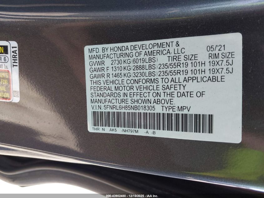 Колір СірийЦиліндри 6Привід Передній привідVIN 5FNRL6H85NB018305Стан Заводиться та їде (перевірено)