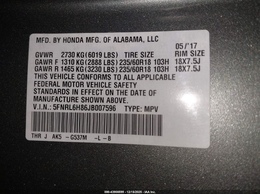 2018 HONDA ODYSSEY - 5FNRL6H86JB007596, колір - Сірий, 3.5, Бензин, Передній привід із США
