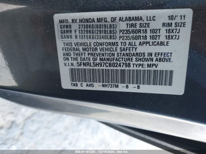 Колір СірийЦиліндри 6Привід Передній привідVIN 5FNRL5H97CB024798Стан Заводиться та їде (перевірено)Ушкодження Передня і задня