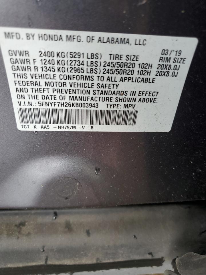 2019 HONDA PASSPORT - 5FNYF7H26KB003943, колір - Сірий, 3.5, Бензин, із США