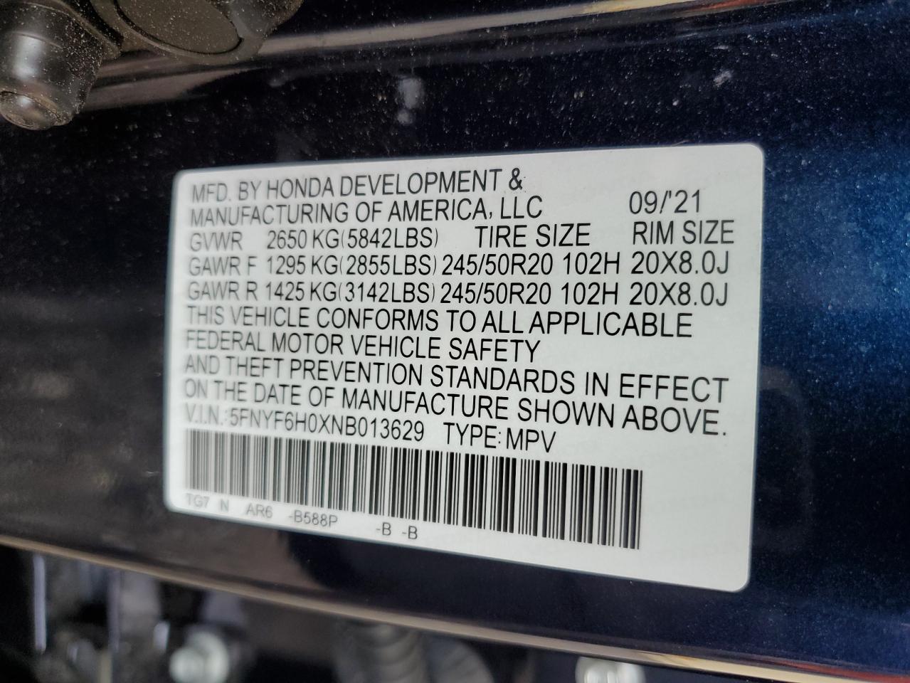 2022 HONDA PILOT - 5FNYF6H0XNB013629, колір - Синій, 3.5, Бензин, Повний привід із США