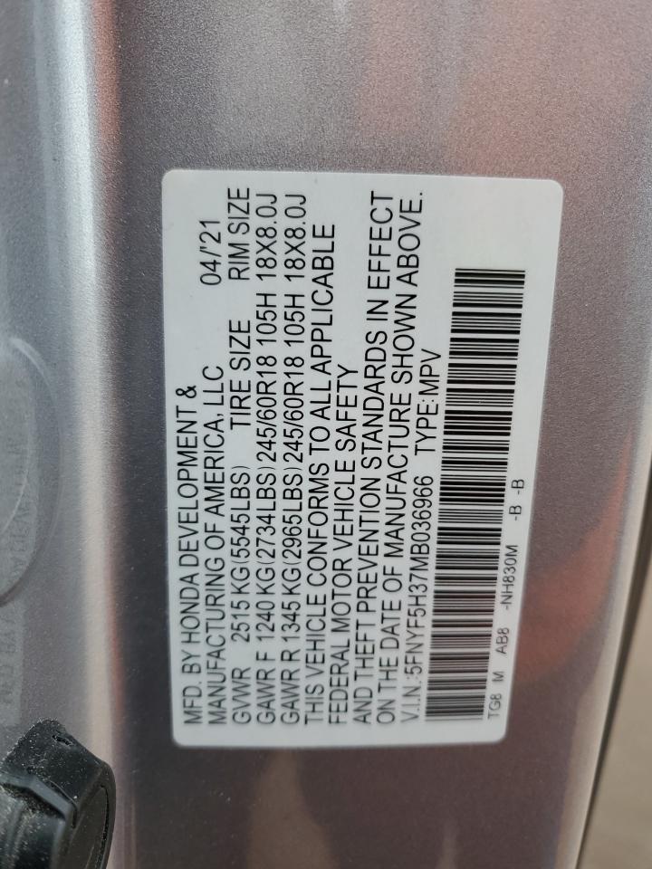 2021 HONDA PILOT - 5FNYF5H37MB036966, колір - Срібний, 3.5, Бензин, із США