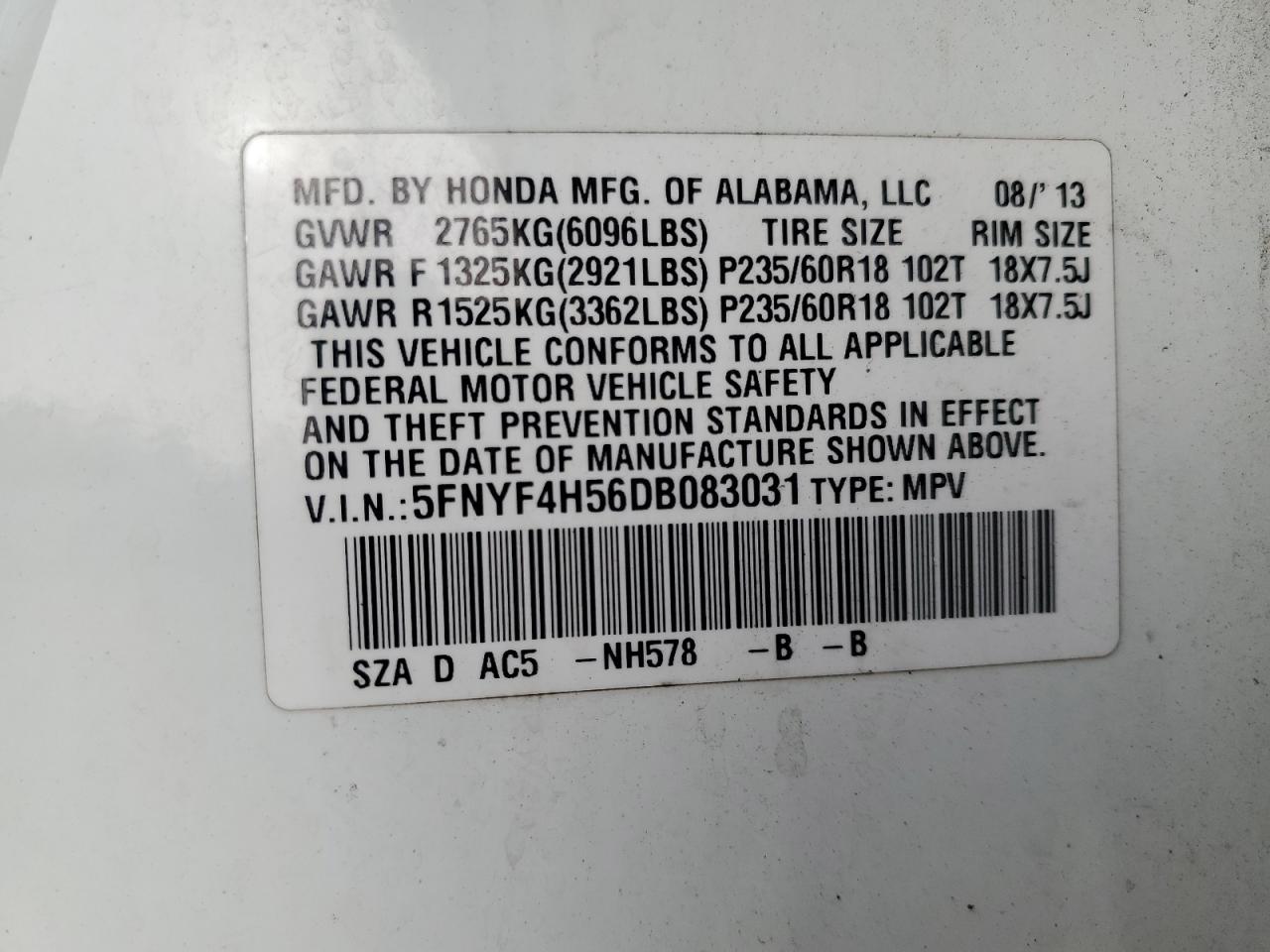 2013 HONDA PILOT - 5FNYF4H56DB083031, колір - Білий, 3.5, Бензин, Повний привід із США