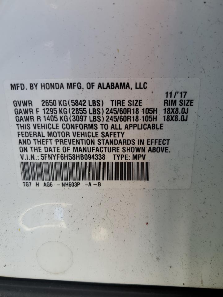 2017 HONDA PILOT - 5FNYF6H58HB094338, колір - Білий, 3.5, Бензин, Повний привід із США