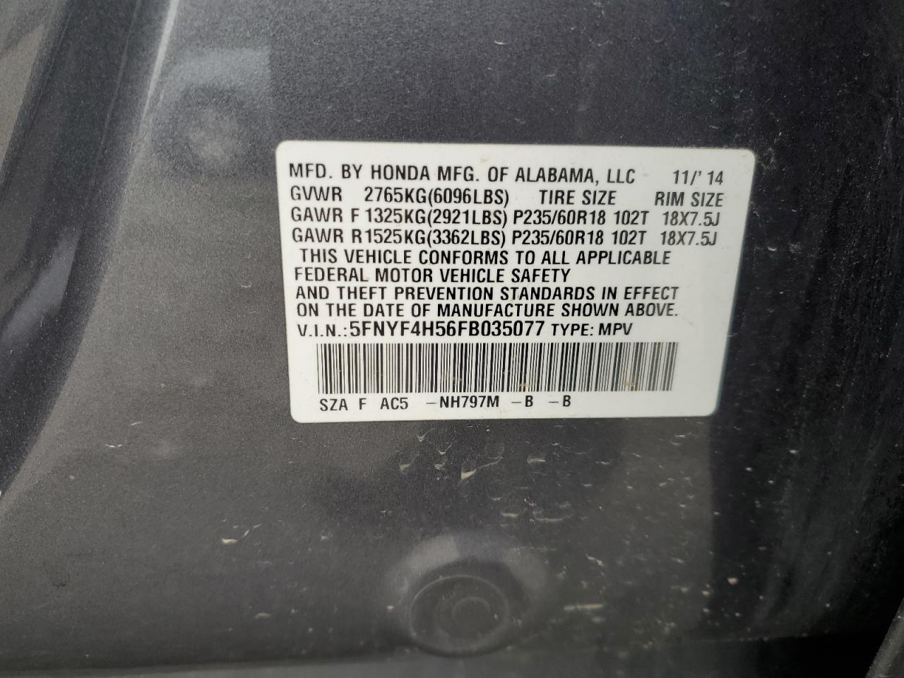 2015 HONDA PILOT - 5FNYF4H56FB035077, колір - Сірий, 3.5, Бензин, Повний привід із США