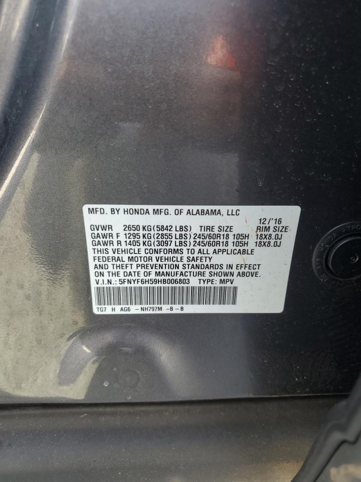 2017 HONDA PILOT - 5FNYF6H59HB006803, колір - Синій, 3.5, Бензин, Повний привід із США