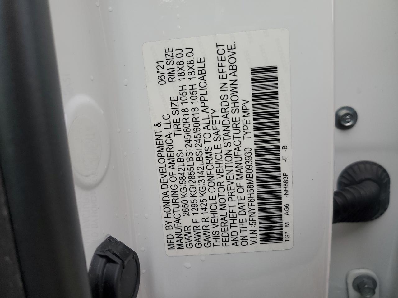 2021 HONDA PILOT - 5FNYF6H58MB093930, колір - Білий, 3.5, Бензин, Повний привід із США