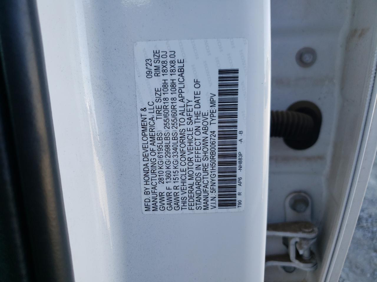 2024 HONDA PILOT - 5FNYG1H50RB006724, колір - Білий, 3.5, Бензин, Повний привід із США