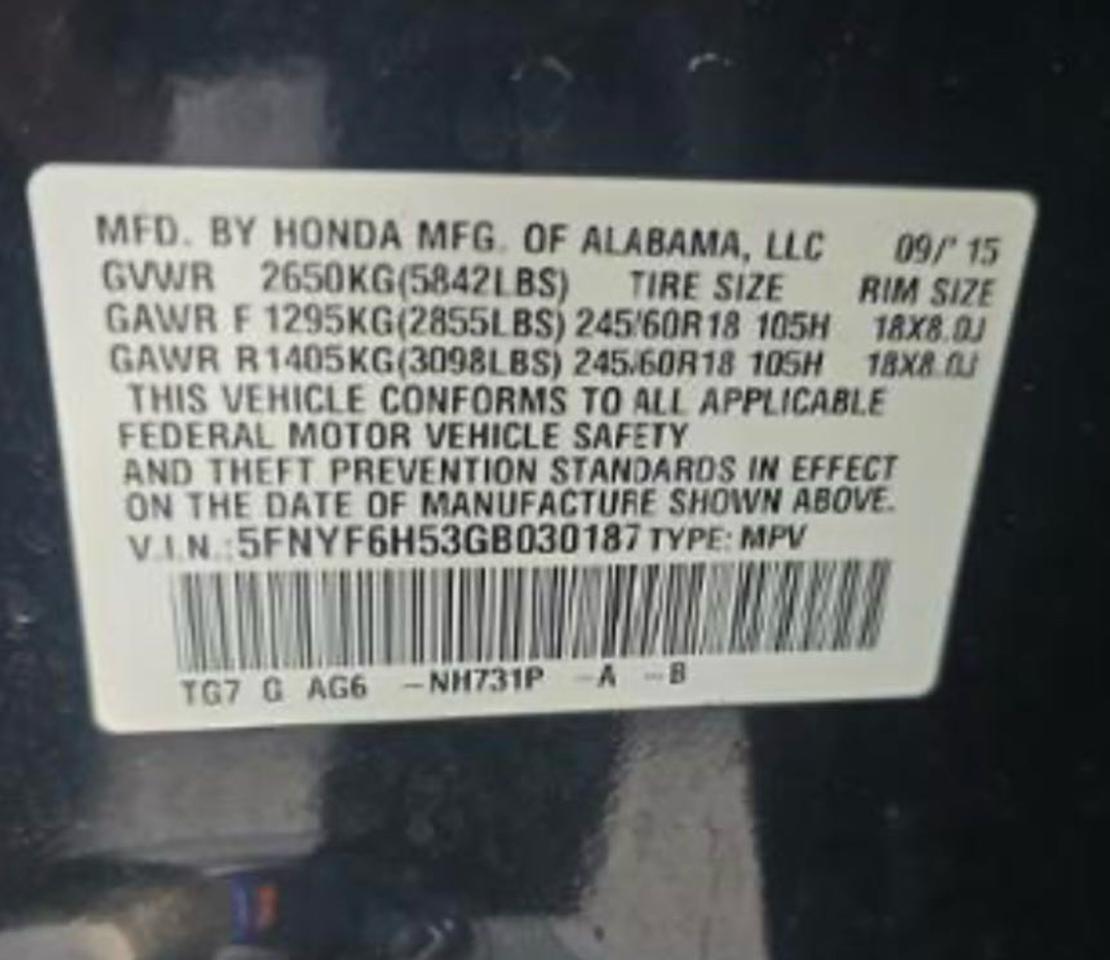 Колір ЧорнийЦиліндри 6Привід Повний привідVIN 5FNYF6H53GB030187Стан Заводиться та їде (перевірено)Ушкодження НезначніДата аукціона 2025-10-09