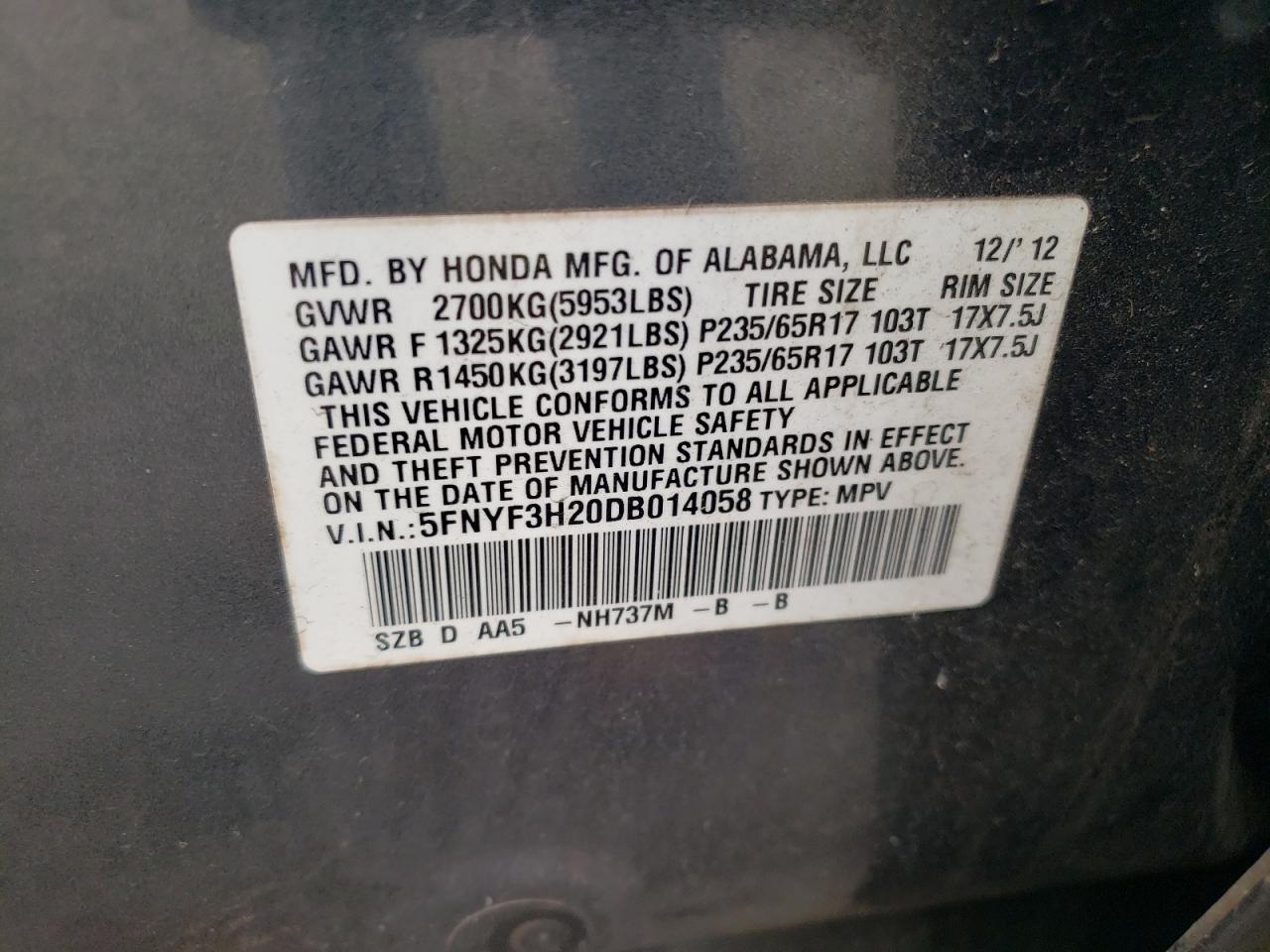 2013 HONDA PILOT - 5FNYF3H20DB014058, колір - Деревне вугілля, 3.5, Бензин, із США