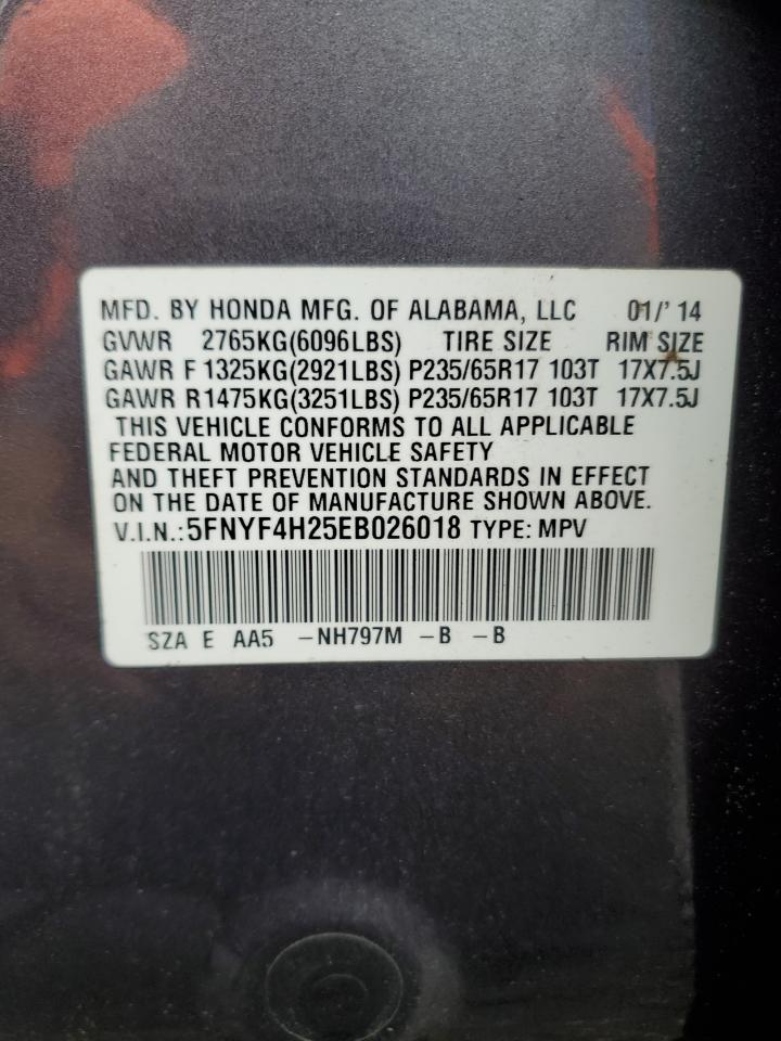 2014 HONDA PILOT - 5FNYF4H25EB026018, колір - Сірий, 3.5, Бензин, Повний привід із США