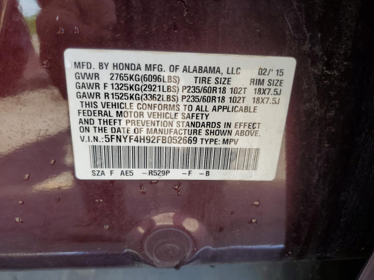 2015 HONDA PILOT - 5FNYF4H92FB052669, колір - Бургундія, 3.5, Бензин, Повний привід із США