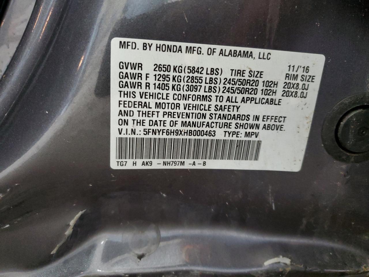 2017 HONDA PILOT - 5FNYF6H9XHB000463, колір - Сірий, 3.5, Бензин, Повний привід із США