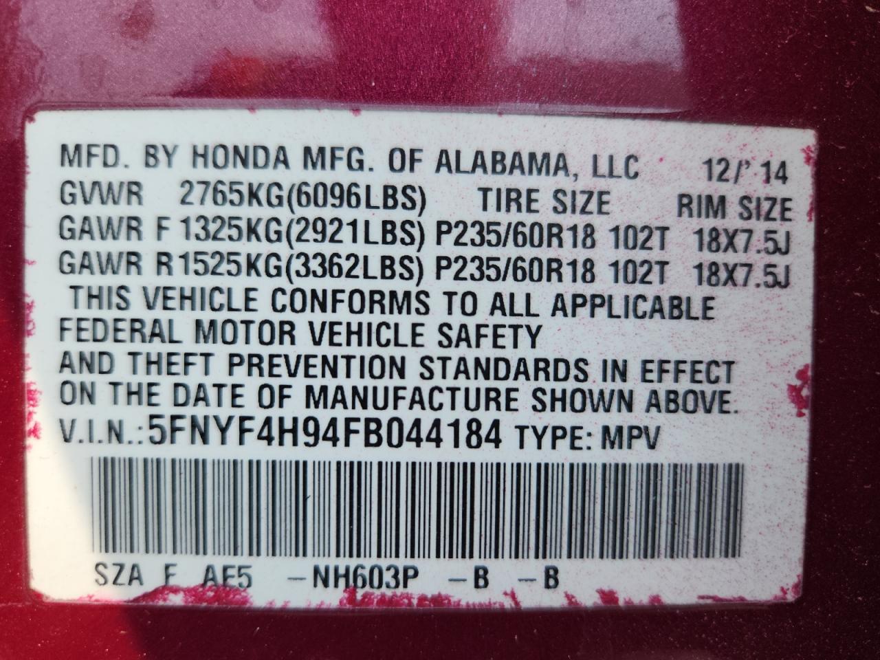 2015 HONDA PILOT - 5FNYF4H94FB044184, колір - Рожевий, 3.5, Бензин, Повний привід із США