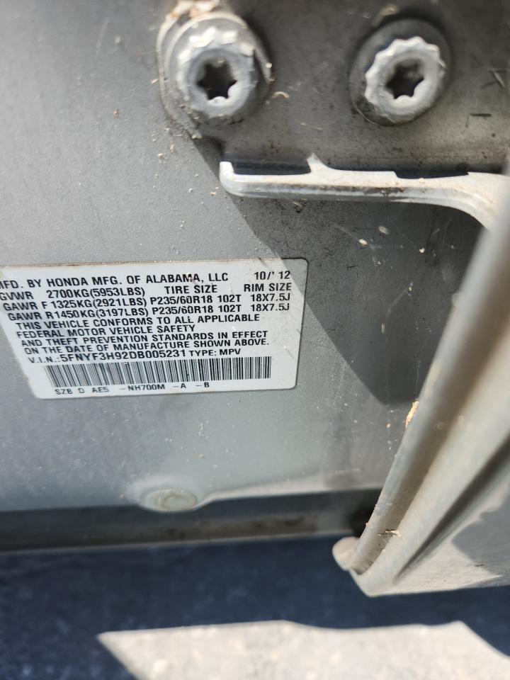 2013 HONDA PILOT - 5FNYF3H92DB005231, колір - Срібний, 3.5, Бензин, із США