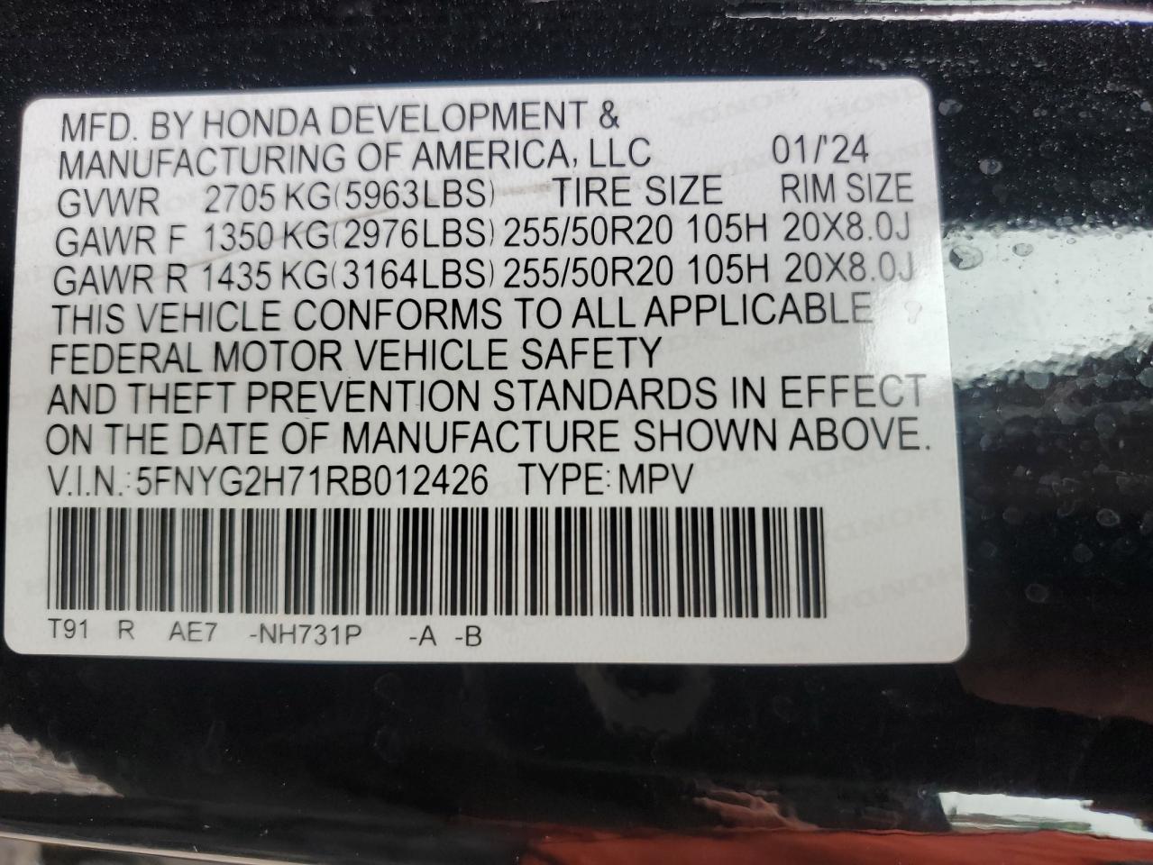 2024 HONDA PILOT - 5FNYG2H71RB012426, колір - Чорний, 3.5, Бензин, із США