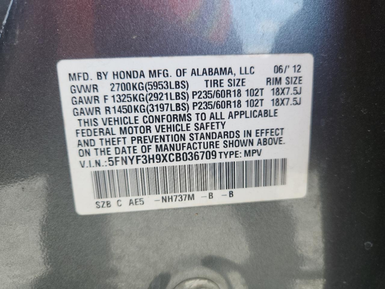 2012 HONDA PILOT - 5FNYF3H9XCB036709, колір - Сірий, 3.5, Бензин, із США