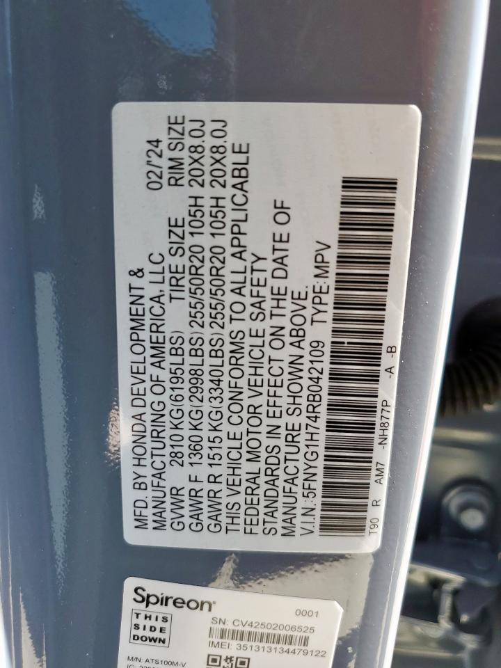 2024 HONDA PILOT - 5FNYG1H74RB042109, колір - Сірий, 3.5, Бензин, Повний привід із США