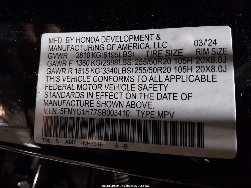 2025 HONDA PILOT - 5FNYG1H77SB003410, колір - Чорний, 3.5, Бензин, Повний привід із США
