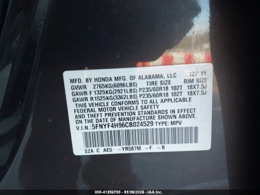 Колір ЧорнийЦиліндри 6Привід Повний привідVIN 5FNYF4H96CB024529Стан НевідомоУшкодження Перекидання