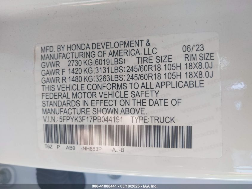 2023 HONDA RIDGELINE - 5FPYK3F17PB044191, колір - Білий, 3.5, Бензин, Повний привід із США