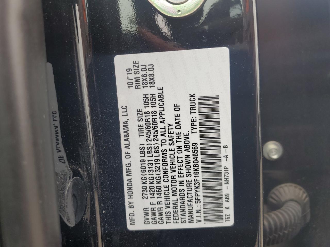 Колір ЧорнийЦиліндри 6Привід Повний привідVIN 5FPYK3F16KB046569Стан Заводиться та їде (перевірено)Ушкодження Передня або задня
