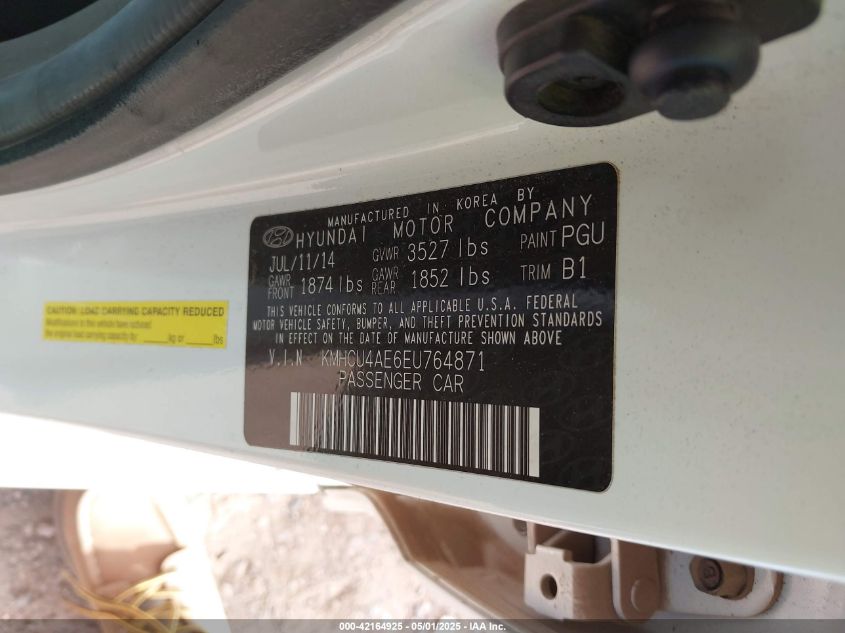 2014 HYUNDAI ACCENT - KMHCU4AE6EU764871, колір - Білий, 1.6, Бензин, Передній привід із США