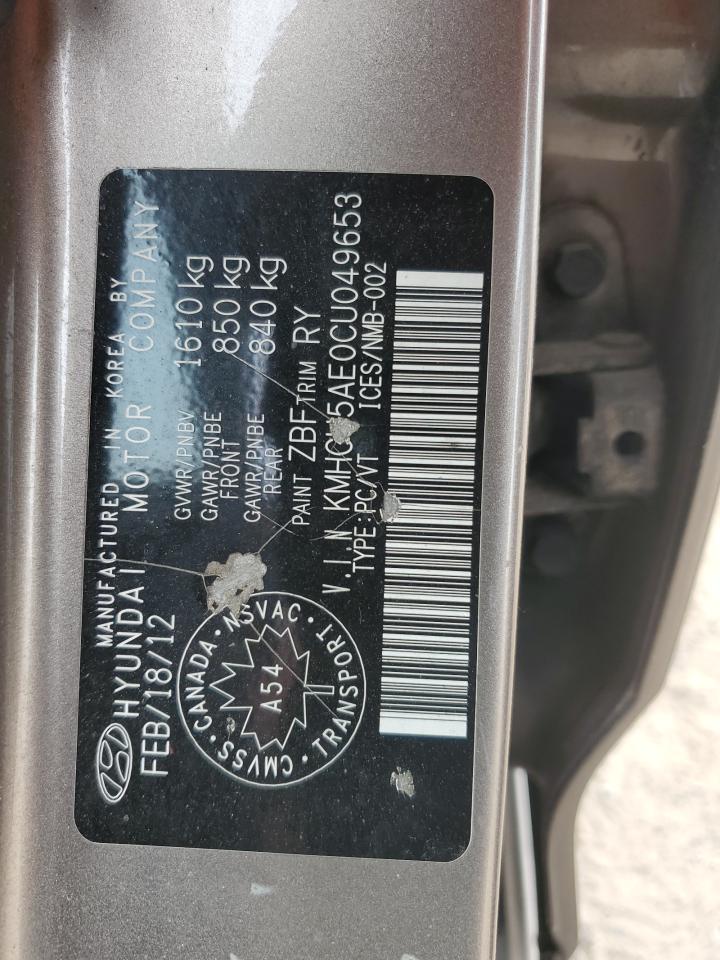 2012 HYUNDAI ACCENT - KMHCU5AE0CU049653, колір - Коричневий, 1.6, Бензин, із США