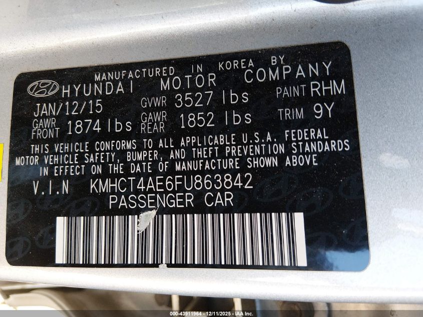 2015 HYUNDAI ACCENT - KMHCT4AE6FU863842, колір - Срібний, 1.6, Бензин, Передній привід із США