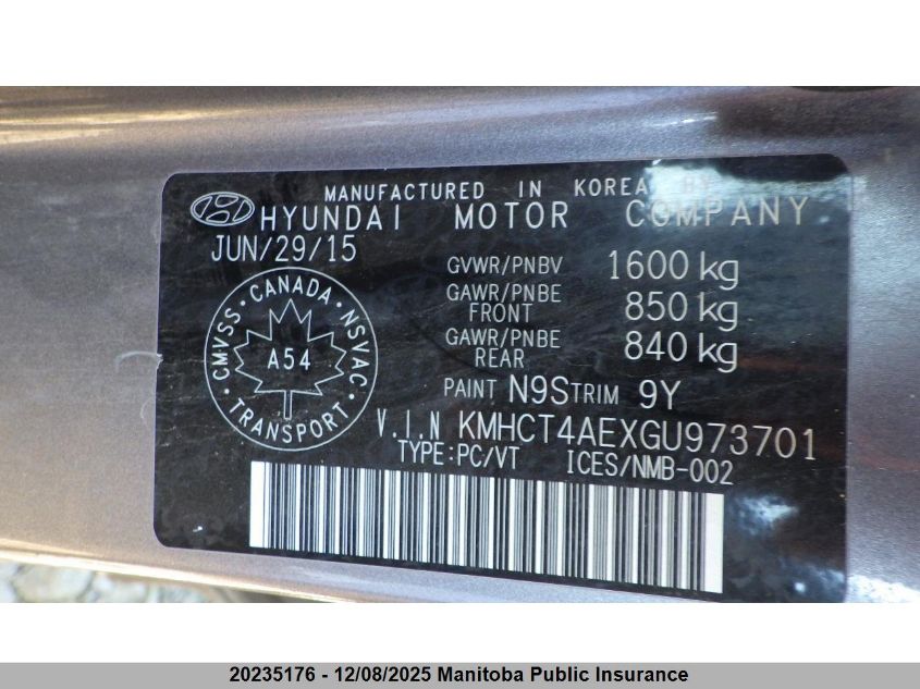 Колір СірийЦиліндри 4Привід Передній привідVIN KMHCT4AEXGU973701Стан СтаціонарноУшкодження НевідомоДата аукціона 2025-12-17