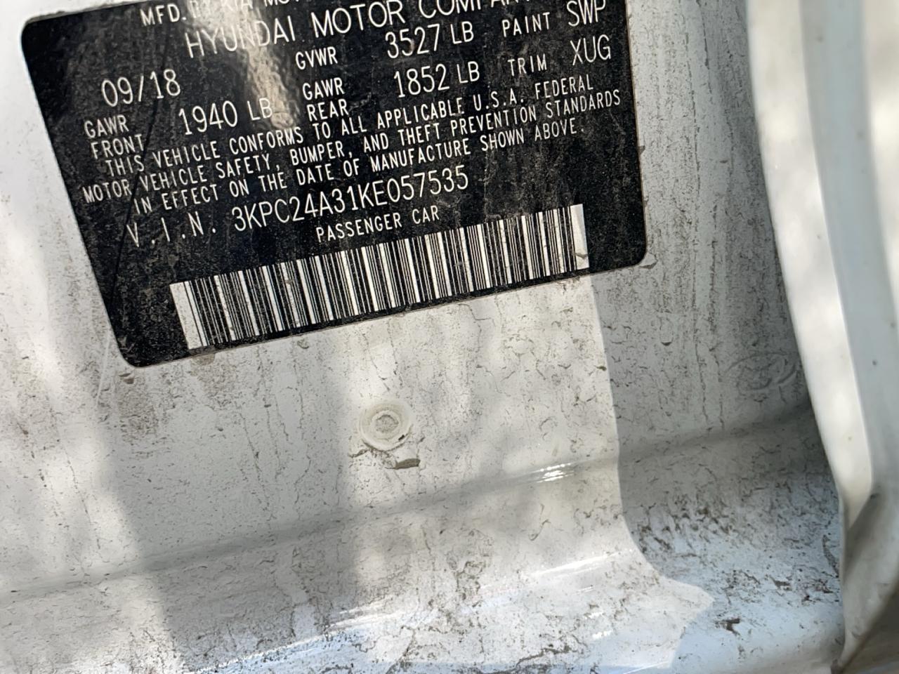 2019 HYUNDAI ACCENT - 3KPC24A31KE057535, колір - Білий, 1.6, Бензин, із США