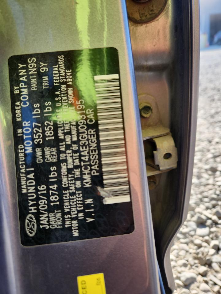 2016 HYUNDAI ACCENT - KMHCT4AE3GU093195, колір - Сірий, 1.6, Бензин, із США